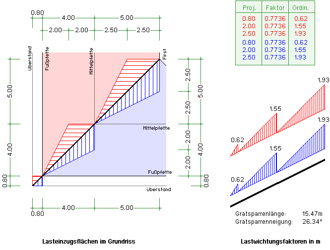 -GRAT, Grat- und Kehlsparren, Lasteinzugsfläche Gratsparren