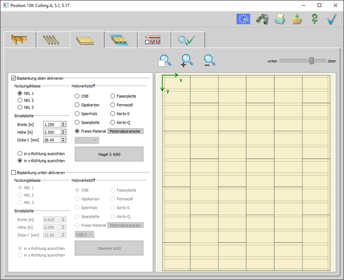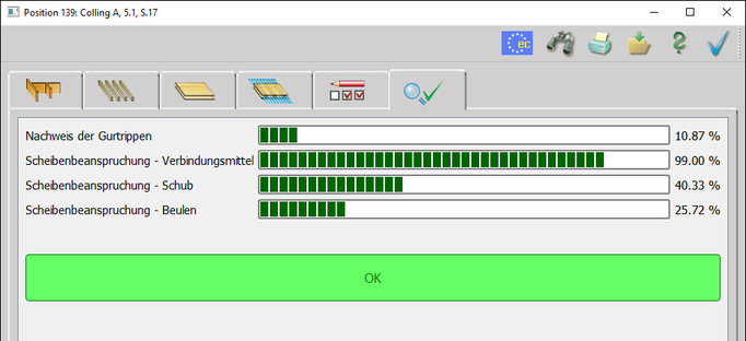 in denen die Parametereingabe erfolgt und die Ausnutzungen dargestellt