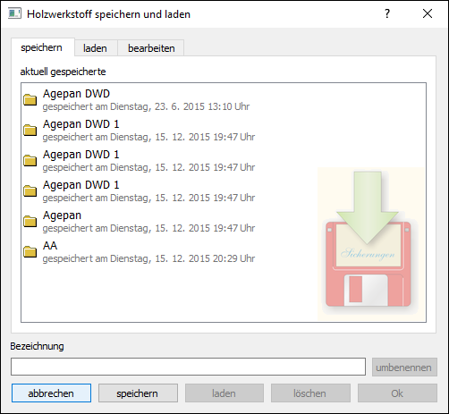 | Dieser Button löscht die Wand in deren Zeile sich der