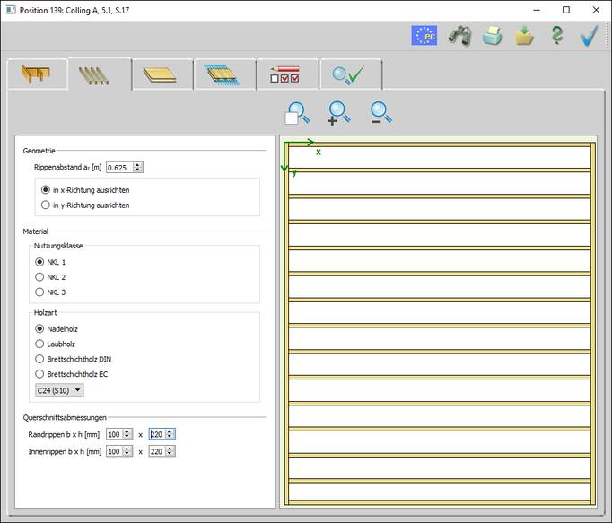 | Eingabe des Achsabstands der Rippen .............................................. |