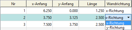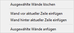 | Wände können durch einen Klick in die betreffende Zeile oder
