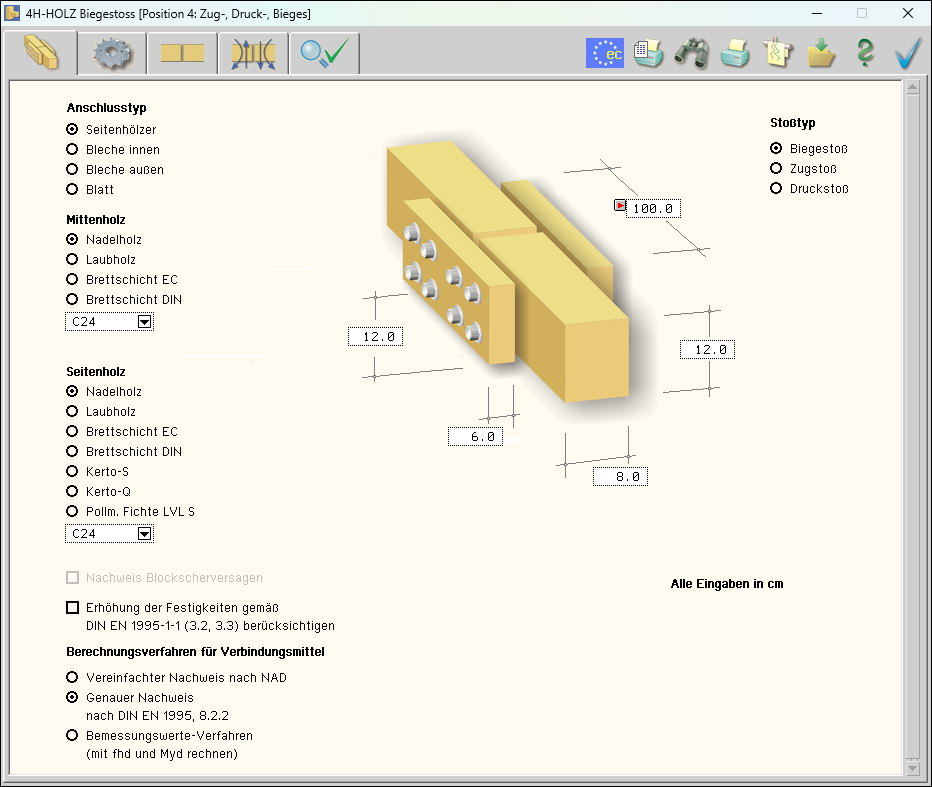 -HBST, Trägerstöße, Haupteingabefenster