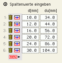 z.B. Nägeln oder Bolzen ist die Eingabe eines