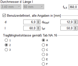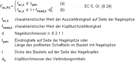 Der Ausziehparameter fax,k und die Kopfdurchziehfestigkeit fhead,k werden nach /16/, 8.3.2 Gl.(8.25), bzw.