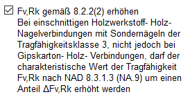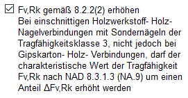 charakteristische Tragfähigkeit Fv,Rk nach Gleichung (NA.129) um einen Anteil ΔFv,Rk erhöht werden. |