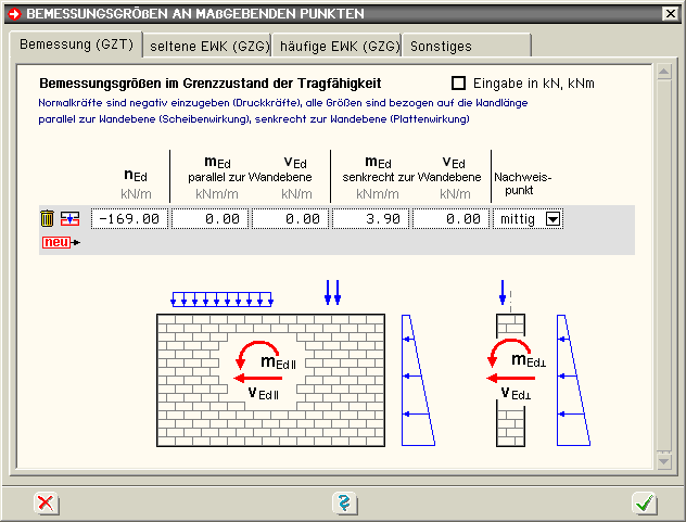 die folgenden Standsicherheitsnachweise (Schnittgrößeneingabe