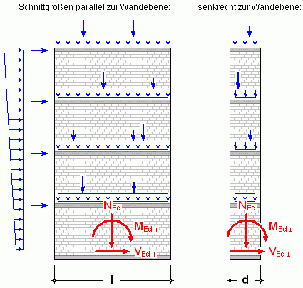 | Schnittgrößen, die in Wand- bzw. Pfeilermitte