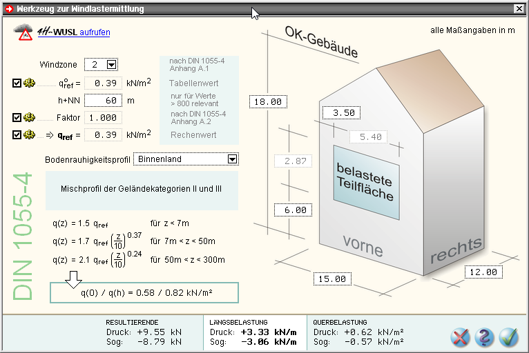 -Mwand, Mauerwerkswand, Werkzeug Windlastermittlung