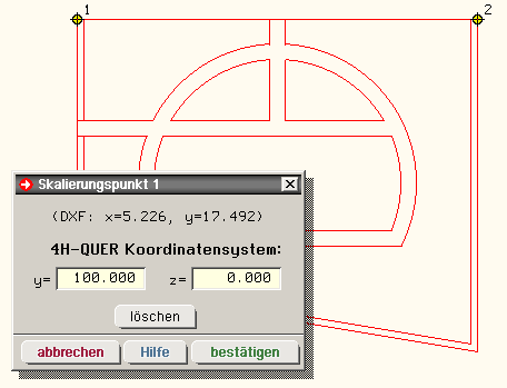 vorgeben zu können, ermöglicht der DXF-Filter die Definition zweier Skalierungspunkte. |