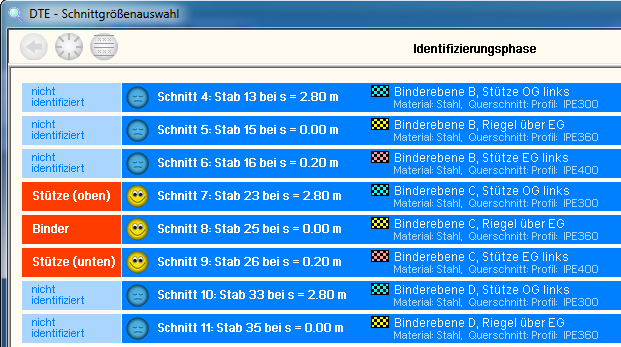 Wird in der Identifizierungsphase ein Schnitt anklickt,