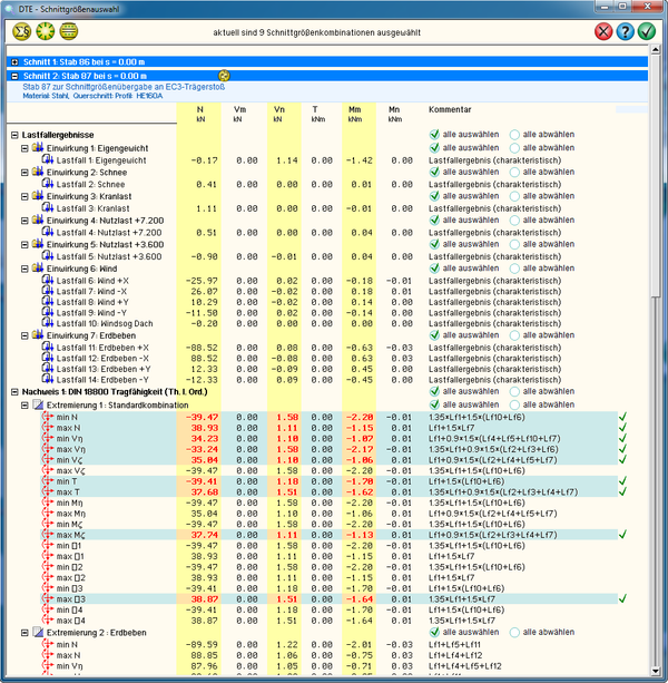 Schnittgrößensatz (3 Kraftgrößen, 3 Momente) übergeben. Das Herausfiltern der relevanten Schnittgrößen der betrachteten