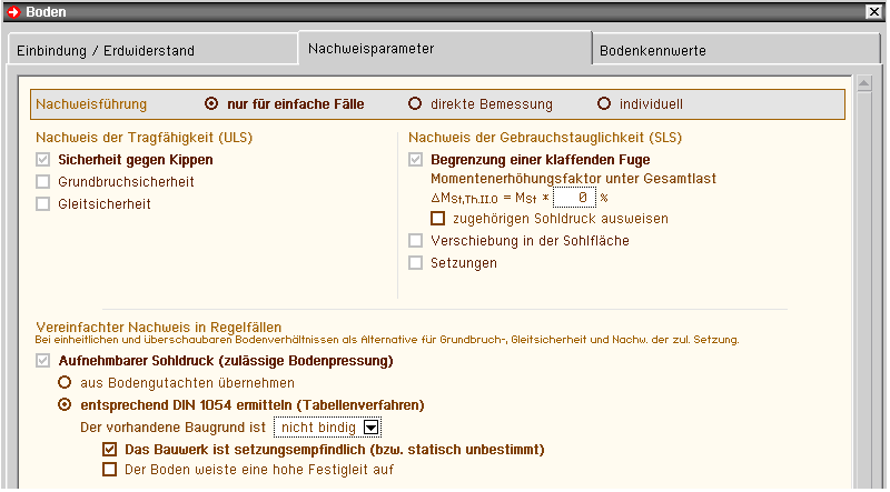 Nachweisparameter Regelfall