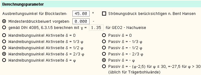 | Für die Erddruckberechnung können folgende