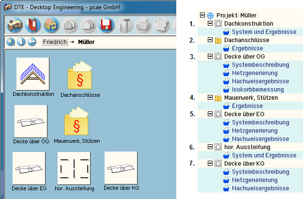 Die im Projektordner befindlichen Bauteile stellen die Kapitel des Dokuments dar. Jedem Kapitel können benutzerdefinierte Anmerkungen in Form von Texten und Bildern (Fotos, eingescannte Skizzen etc.) zugeordnet werden.