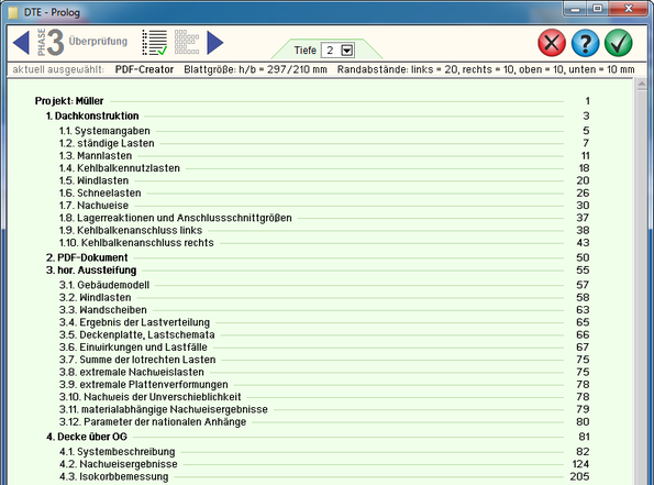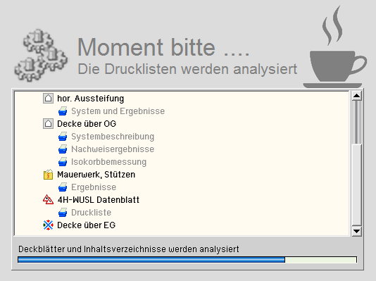 Von allen Bauteilen eines ausgewählten Projektordners soll eine Gesamtdruckliste erstellt werden, die das Dokument statische Berechnung des Projekts darstellt.