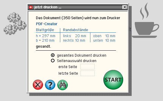 ... wird ein Eigenschaftsblatt aufgerufen, in dem der Drucker, auf dem das Gesamtdokument ausgegeben werden soll, ausgewählt werden kann.