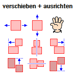 Die obere Reihe der nebenstehend dargestellten Schaltflächen dient dazu, Objekte im Bearbeitungsfenster zu verschieben.