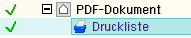 Dem Baum vorangestellt ist ein Zeichen ( oder ), das darüber entscheidet, ob das zugeordnete Objekt und seine Drucklisten zur Gesamtdruckliste des Projekts gehören oder nicht.