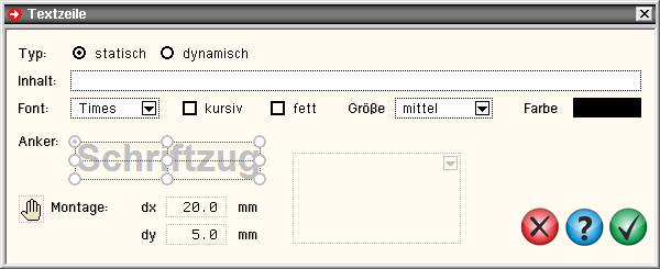 nicht ändern. Die statische Textzeile wird in der Zeile Inhalt eingegeben.