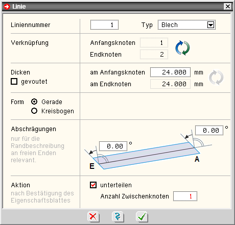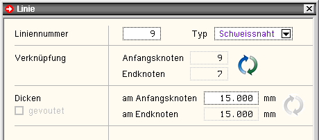 | Führen Sie einen Doppelklick über der Linie 1 (zwischen Knoten 1 und Knoten 2) aus. |