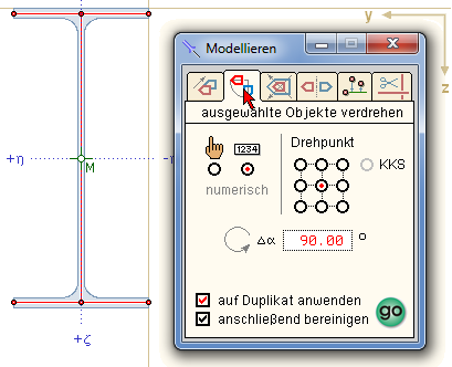 um den Mittelpunkt (der Lage des Originals) um 90° verdreht hinzugefügt. |