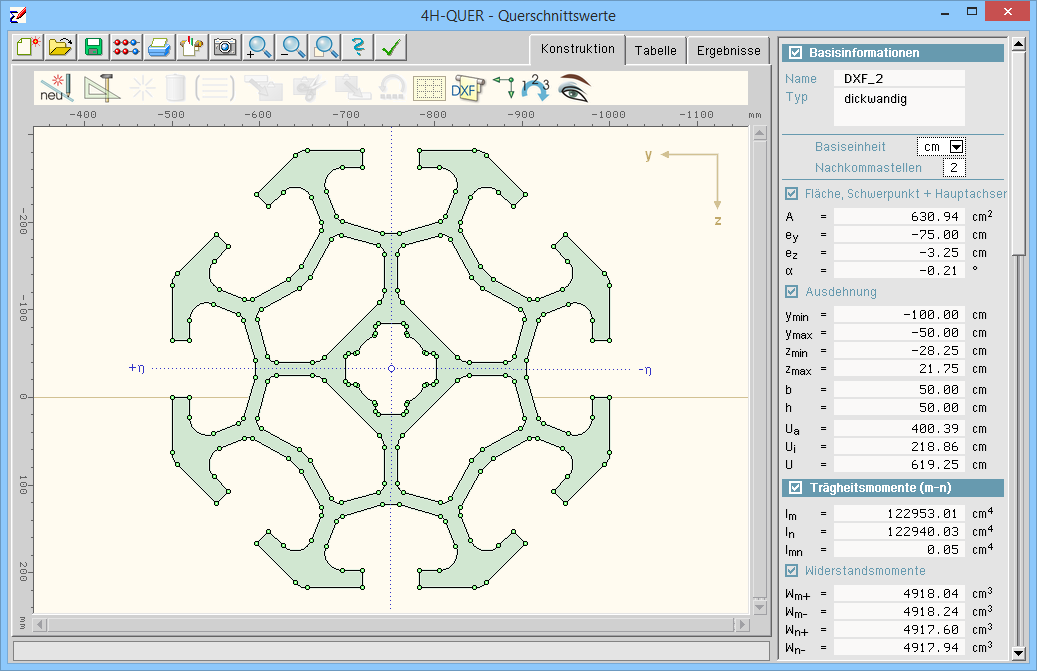 | 4H-QUER, Aluminiumquerschnitt - Darstellung Torsionsschubspannung |