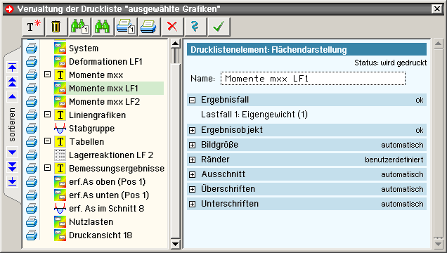 sind in der Druckliste ausgewählte Grafiken Elemente (Druckansichten) gespeichert, können
