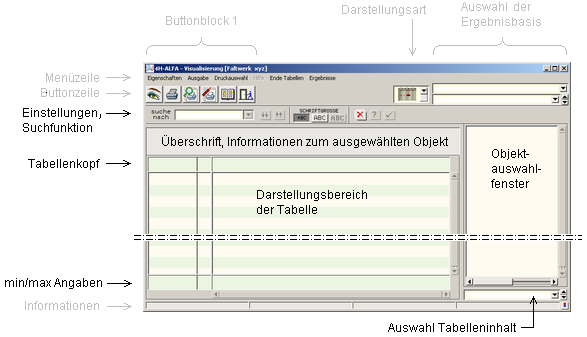 Tabelleninhalt in der Auswahlliste Auswahl Tabelleninhalt zusammengestellt werden, der anschließend im Fenster Darstellungsbereich
