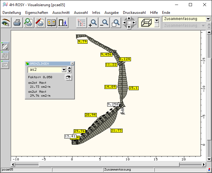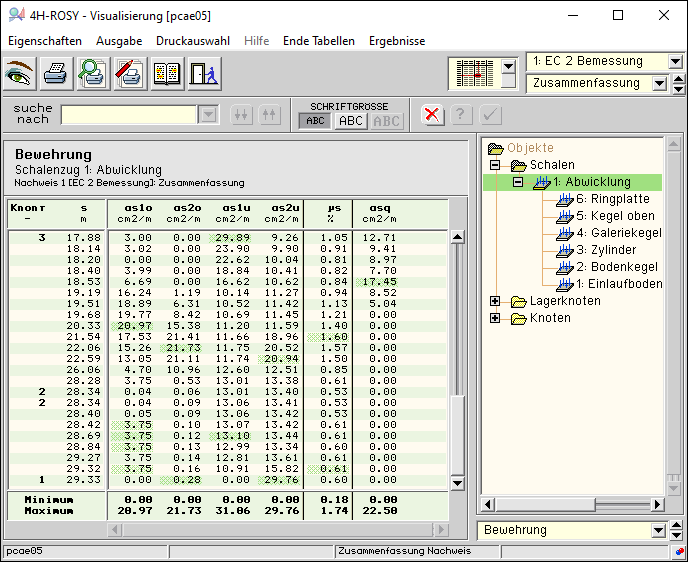 und abschließend der Ergebniswerte in Form von Bewehrungs-